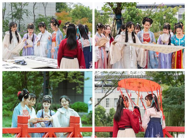 9月25日下午,敏行楼东侧的滨水景观区人头攒动,热闹非凡。来自教职工书画协会的教师代表现场挥毫,饱含中秋韵味的书法作品展现出中华文字之美,表达出师生对传统文化的独到领悟。来自社团琼花国学社的学生身着汉服,或静坐抚琴,或频频施礼,或翩翩起舞,悠远的琴声、优雅的举止、悦动的身姿演绎出学生对传统文化的传承、对校园生活的热爱。