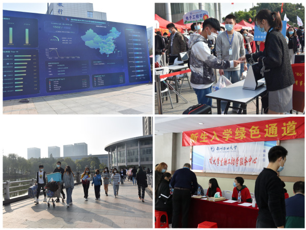 在报到现场,采用人脸识别技术对新生身份进行核验,真正实现了“刷脸”报到。现代教育技术中心相关负责人介绍,“智慧迎新”平台实时抓取数据,统计、分析各学院新生报到情况、各环节办理情况,并及时传输到现场的大屏上,从而实现学校多部门间的无缝合作,提高新生接待的工作效率。