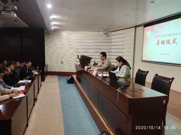 10月14日,2020年实验实训室安全月启动仪式在学校崇德楼315会议室举行。副校长王如平出席会议并讲话。设备处全体人员、各学院主要负责人、实验实训室分管负责人、实验实训室(中心)主任、实验实训室管理人员参加启动仪式。会上,各学院向学校递交了实验实训室安全责任书;设备处处长徐继红宣布了聘任邵汝军等三人为学校实验实训室第二批安全督导员,王如平向第二批安全督导员颁发了聘书;机械工程学院等四个学院的实验实训室管理人员分享了管理经验。