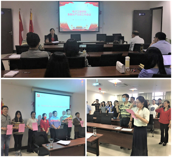 5月11日下午,电子工程学院召开2021年全面从严治党工作会议,扎实推进学院党风廉政建设和反腐败工作,学院内设机构以上负责同志以及全体党员参加会议。