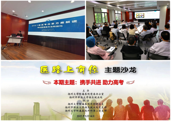 5月14日下午,由扬州大学附属医院党委办公室和我校betway 官网 处举办的“医路上有你——携手共进 助力高考”主题沙龙活动在扬州大学附属医院住院部4楼第二学术报告厅举行。我校betway 官网 处招生科科长梁明富副教授为医护人员特别是扬大附属医院的考生家长讲解了《2021年新高考改革方案解读和志愿填报方法和技巧》。