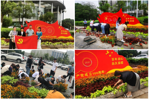 在建党100周年之际,为表达对党和祖国的热爱,6月17日下午,园林园艺学院党总支在校西门处,举行“鲜花献给党”主题党日活动,学院师生党员用千朵鲜花,装束成美丽的花境,为庆祝建党100周年献礼。