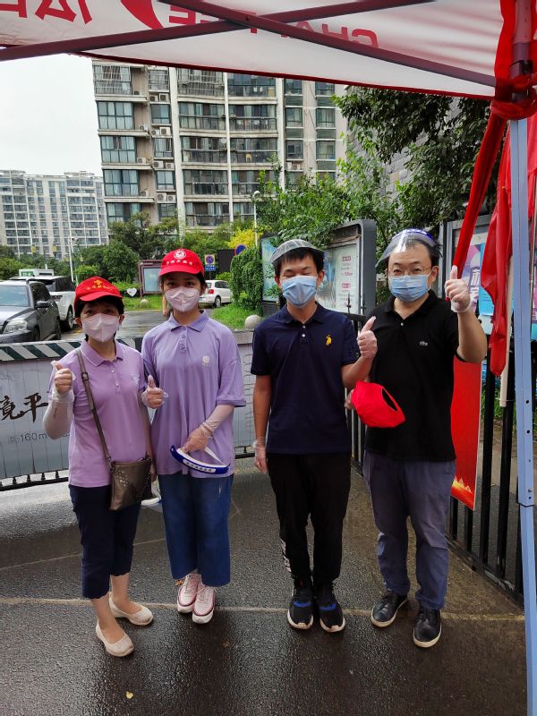 疫情就是命令,当得知社区人手紧张、志愿者队伍不足时,这一家人就早早报名,在党组织发出党员和机关干部下沉社区的号召前,就已成为了光荣的社区志愿者,家里的党员还加入了社区防疫行动临时党支部。他们的身影有时出现在核酸检测点维持秩序、查看苏康码等,有时出现在楼栋间分发政府的平价菜、平价肉,更多时候,他们在南门值守检查出入证、测量体温、查看健康码。8月17日,随着疫情防控升级,面对个别不理解的居民,他们不厌其烦地解释“请不要出小区、不要出楼栋,原先五天一次的出入证失效,志愿者凭通行证出入”。此时,还有一位家庭成员志愿者也在忙碌着,她就是袁刚的妻子——我校管理学院双带头人(专业带头人、党支部书记)蒋丽老师,她与我校其他教职工志愿者一起前往封闭管理小区梅岭东苑协助封控工作,为不能出楼栋的居民们送菜、扔垃圾。在社区志愿者经费不足时,她主动捐款,在邻居因封控没米时,她主动捐粮,以解燃眉之急。