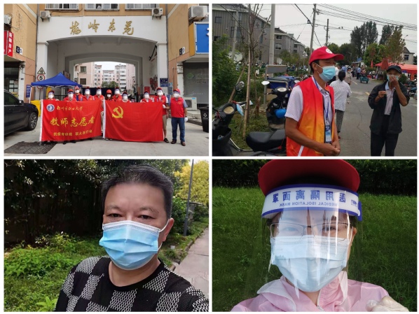 烈日骄阳、酷暑高温,虽然工作很累,但没有一个人后退、抱怨。周溢青老师刚刚入职不到一年,在学校招募志愿者的第一时间就不惧风险,报名参加,先后参与新盛街道、阳光新苑、梅岭东苑等中高风险地区的服务工作。她凌晨3:30起床,4:30赶到社区报到维持核检秩序,在封闭小区协助管控居民、运送生活用品、宣传疫情防控政策和知识、清理垃圾等。张勇老师下沉所在小区,顶着痛风发作,不分昼夜,全身心投入到社区志愿服务中去。已经退居二线的老党员李芸同志,每天帮助小区运送物品到居民家中......