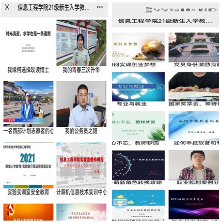 9月27日至30日,为期3天半的入学教育,信息工程学院反复探讨,精心谋划,从线上平台的选择到主讲师生的人选,从各环节安排的科学合理到授课方式、内容的创新……力求借助网络和专业优势,克服师生无法面对面交流带来的不利影响,于常规教育中见新意,于创新教育中见实效。除了延续往年线下教育有关“校史、校情介绍”“专业介绍”“实验实训室操作规程介绍” 等专业教育内容以及“入党基本知识教育”“心理健康知识教育”“学生组织建设及综合测评介绍”“资助政策及诚信感恩教育”等辅导员必讲内容,本次入学教育新增了“如何申报软著和专利”等专业课优秀教师讲座板块,《大一萌新角色转换攻略》《职业规划案例分享》《专业知识和技能的应用——以学院微信公众号建设为例》的“助理班主任朋辈教育”板块以及云班会和线上联欢会等环节。
