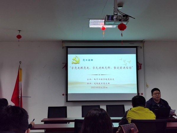 10月21日下午,电子工程学院党总支组织全体教工党员开展了以“学党史跟党走,学先进做先锋,坚定前进信念”为主题的党日活动。