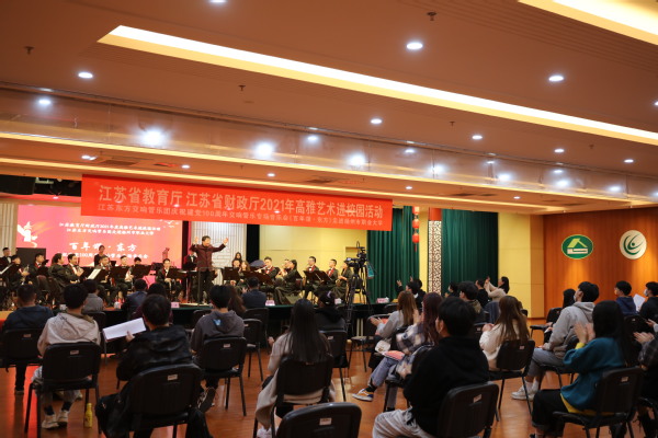 11月12日下午,由江苏省教育厅、财政厅主办,我校和江苏东方交响管乐团承办的2021“高雅艺术进校园”——《百年颂·东方》专场音乐会在芳华剧场成功举办。此次音乐会用管乐歌颂党的丰功伟绩,奏响了一曲又一曲的奋进之歌。党委副书记、副校长许金如,纪委书记黄华明,党委委员、组织(统战)部部长华炜,党委委员、党委宣传部部长花军及相关学院、职能部门负责人和部分师生代表欣赏了这场指尖上的听觉盛宴,感受了管乐的独特艺术魅力。