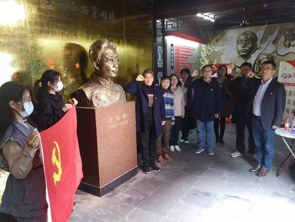 11月20日,办公室党支部组织全体党员赴江都许晓轩故居开展实境党课,专题学习十九届六中全会精神。机械工程学院“晓轩先锋队”青年志愿者共同参加活动。