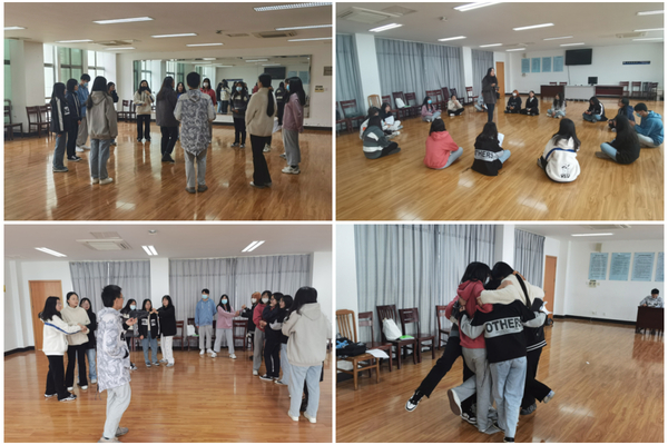 活动前,学工办老师庄仲侠、陈青青就即将开展的新生心理普查工作提出建议,对新生团体辅导方案进行解读,班委们纷纷表示支持并积极参与团辅培训。同学们通过“名字滚雪球”熟记了彼此的名字,在“大风吹”游戏中尽情展示自己的才能,“松鼠与大树”游戏初次与陌生的同学握手,“同舟共济”游戏作为一个团体紧紧拥抱在一起……从拘谨到熟悉,从个体到整体,随着游戏的深入,同学们拉近了彼此距离,既是身体上的靠近,也是心理上的交流。