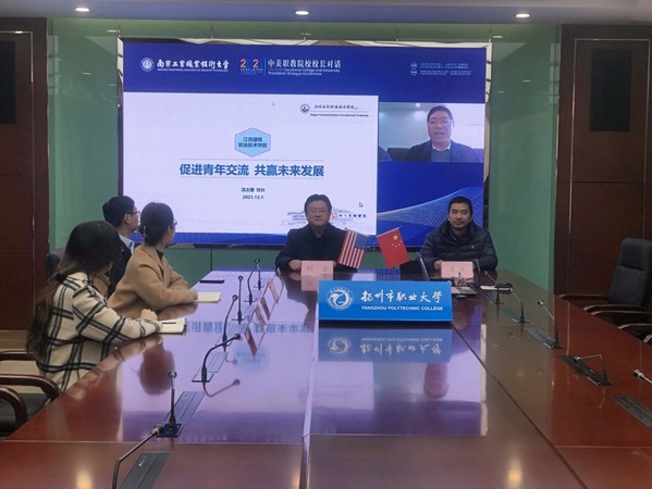 为进一步推进江苏-美国高职教育合作联盟工作,促进中美职业教育合作交流,12月1日上午,联盟举办了“中美职教院校校长对话”会议,省教育厅、省外办、省内联盟成员单位及美方高职院校参加会议,我校副校长刘宏及国际交流合作处全体人员参加了线上会议。