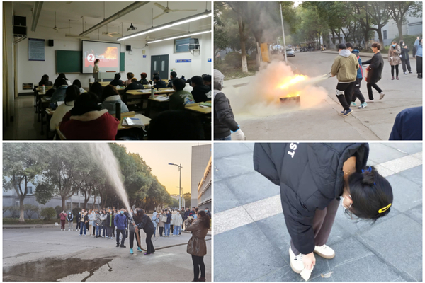 三是强化演练,提升技能。12月2日下午,学院联合保卫处开展了消防培训和演习,在保卫处工作人员的指导下,参加活动的师生不仅了解到正确的火场疏散逃生方法,还进行了干粉灭火器模拟灭火和消防栓连接水枪扑灭初期火灾的演练。培训和演练切实提升了广大师生逃生自救能力和应急处置能力。