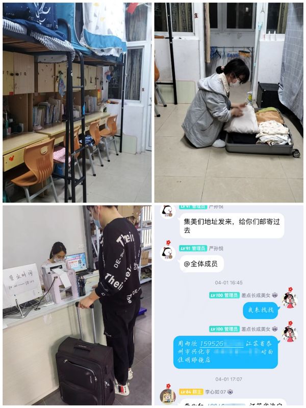 根据疫情防控要求,学校实行校园封闭管理。眼看2022年毕业季就要来临,药技1902班25位同学因为疫情无法返校,他们在宿舍的行李怎么办?中共预备党员、班级团支书严孙悦同学早早想到了这个问题,于是和其余9位在校同学商量办法。
