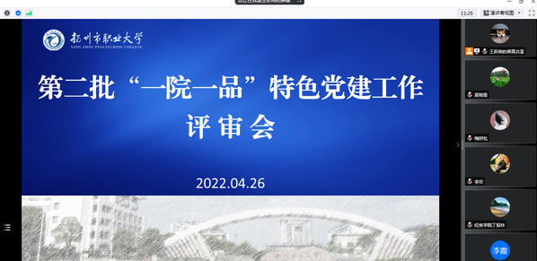 4月26日,我校第二批“一院一品”特色党建工作评审会于线上召开。党委副书记、副校长许金如及各相关职能部门负责人出席会议并担任评委,电子工程学院、园林园艺学院、医学院、管理学院、旅游学院、经济贸易学院、外国语学院以及数学科学学院等8个党总支的项目负责人依次完成项目陈述并回答评委问题,其他学院党总支负责人参与旁听交流。项目申报学院党总支从围绕中心抓党建、抓好党建促发展的思路出发,根据学院党建基础和事业发展需要,精心策划具有学院特色的党建品牌项目,发挥党建引领作用,提升基层党组织的组织力。