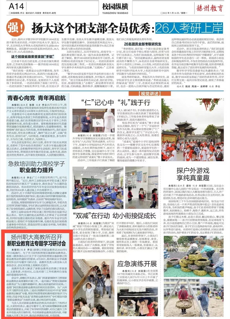 【扬州晚报】扬州职大高教所召开新职业教育法专题学习研讨会