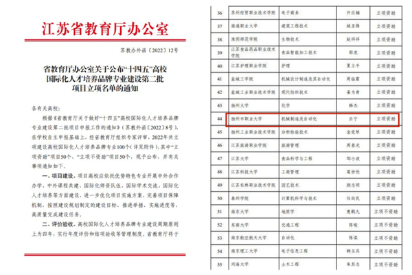 我校机械工程学院机械制造及自动化专业申报的“十四五”高校国际化人才培养品牌专业建设第二批项目成功立项,且被列为前50个立项资助品牌专业之一。申报工作得到了学校领导关心和大力支持,国际交流合作处和机械工程学院通力合作,精心准备,提交了专业申报表、各类支撑材料及材料翻译,完成了线上答辩等工作。