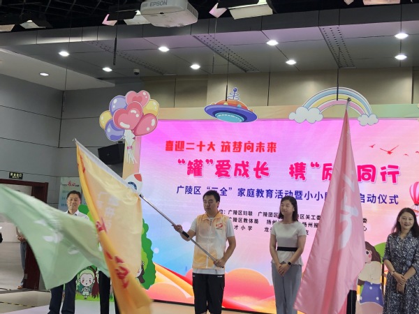 8月25日下午,医学院学工党支部组织“红医”先锋队参加广陵区“三全”家庭教育活动暨小小励行家启动仪式,扬州市广陵区妇联、区团委、区关工委领导为志愿服务队授旗。