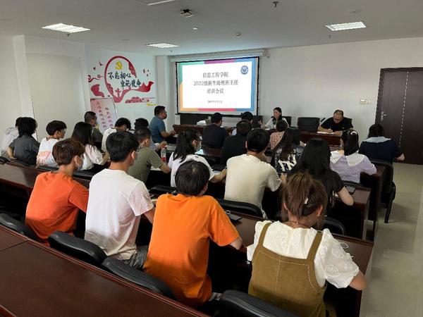 9月7日下午,信息工程学院在图书馆707会议室开展2022级助理班主任岗前培训。学院党总支负责人、全体辅导员以及2022级班主任、助理班主任参加了此次培训。