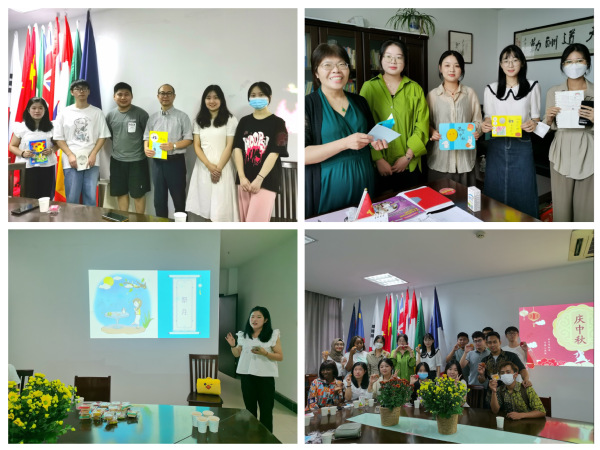 最后,中外学生共同演唱了歌曲《月亮代表我的心》和《但愿人长久》,并在美好的音乐声中将亲手制作的中秋节、教师节贺卡送给学院的老师们,表达对老师们深深的祝福。