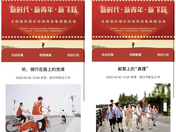 9月30日,由我校制作并报送的短视频《听,骑行路上的党课》《邮票上的“真理”》入选“新时代·新青年·新飞跃——全国高校理论短视频征集展播活动”。