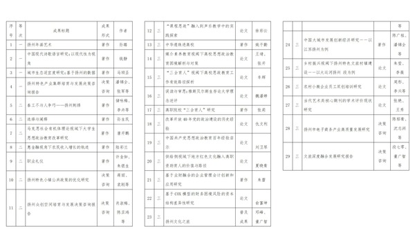 近日,扬州市第十三次哲学社会科学优秀成果评奖结果揭晓,本届最终评选出获奖成果120项。我校29项成果获奖,其中一等奖4项、二等奖7项、三等奖18项,获奖数量创历史新高(比上一届增加13项),在全市高职院校位列第一。