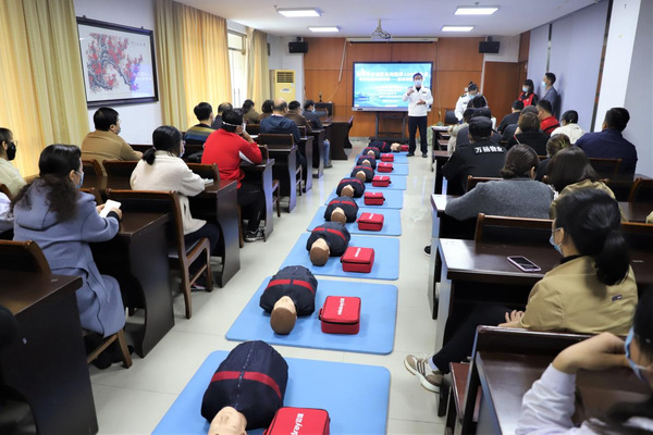 市急救中心相关工作人员首先介绍了AED的重要性,并结合理论知识和实际救护技巧对生活中遇到突发状况时的急救、徒手心肺复苏、AED的使用等做了详细讲解。随后市急救中心对徒手心肺复苏、AED使用操作要领进行了演示,在受训人员实操时,手把手纠正出现的问题与不足。通过培训,参训人员熟练掌握了徒手心肺复苏急救及AED使用方法。