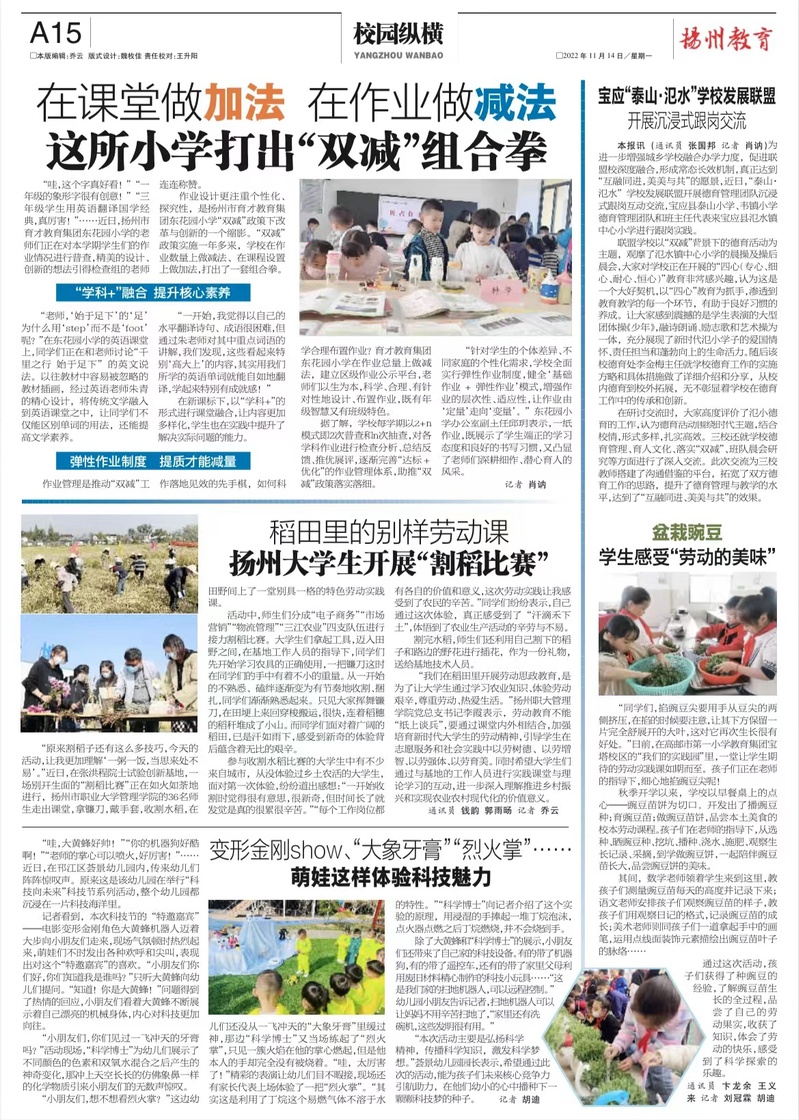 【扬州晚报】稻田里的别样劳动课 扬州大学生开展“割稻比赛”