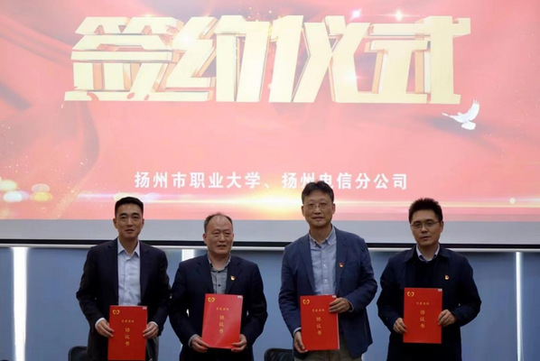 在江北数据中心(仪征园区)相关人员引领下,大家参观了江北数据中心(仪征园区)的机房、电力电池室、冷冻站、应急指挥中心,了解了数据中心服务能力及业务拓展方向。随后,现代教育技术中心党支部与扬州电信分公司政企部、扬州电信分公司网络操作维护中心支部进行了交流座谈,就现阶段合作的项目进行了深入磋商。座谈会上,举行了党建翼联签约仪式,双方支部书记分别介绍了党支部情况和业务情况,并签订结对共建协议,标志着双方党建业务双融合。