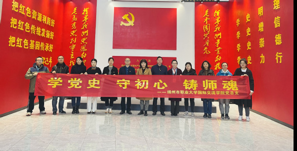 国际交流学院党总支全体党员和教师来到扬州市党史文化公园初心馆参观学习,回望中国共产党从一大到二十大走过的光辉历程,感悟共产党人不怕牺牲、不畏艰辛、坚韧不拔、迎难而上的伟大精神,集体观看了党的二十大报告宣传片《科教兴国,人才强国》。全体党员在党总支书记陈峰的带领下,面向鲜艳的党旗,重温入党誓词。老师们表示,高校作为为国家培养人才的重要基地,教师应该肩负起时代的重任,立师德,铸师魂,为国家培育出更多高素质创新性人才。
