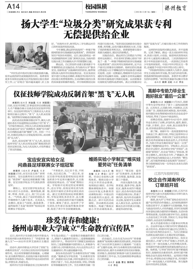 【扬州晚报】珍爱青春和健康!betway必威中文版 成立“生命教育宣传队”