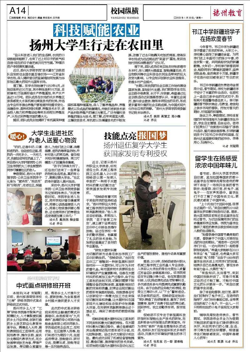 【扬州晚报】技能点亮报国梦 扬州退伍复学大学生获国家发明专利授权