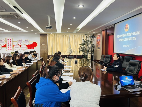 为提升防范电信网络诈骗宣传水平,3月15日,纺织服装学院“织梦”社团防诈骗志愿服务队来到新盛派出所集体“备课”。