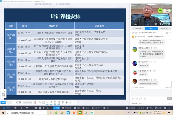 3月22日,资源与环境工程学院副院长刘学方副教授应生态环境部评估中心邀请,为全国2023年第二期生态环境保护综合行政执法干部岗位培训。