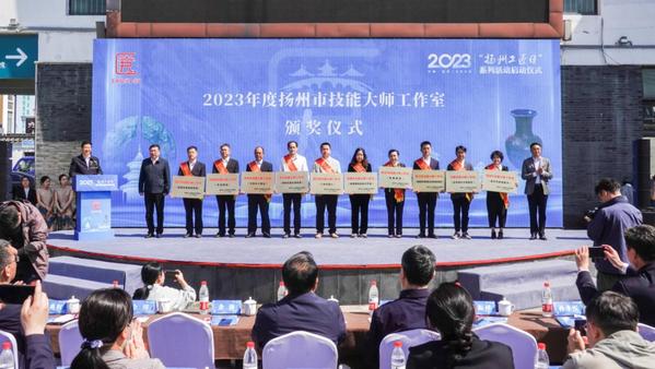 5月9日上午,由市政府主办,市人社局、市总工会共同承办的首届“扬州工匠日”系列活动启动仪式在扬州486非遗集聚区广场举行。活动现场公布了2023年度扬州市企业首席技师、扬州市技能大师工作室评选结果。我校徐继红教授领衔的技能大师工作室入选扬州市技能大师工作室。徐继红大师应邀参加了此次工匠日的启动仪式,并作为高技能人才代表参加了技能大师工作室授牌仪式。