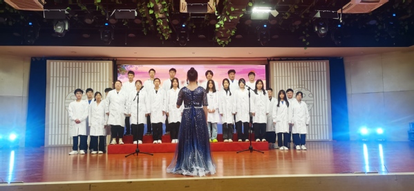 同学们以饱满的热情、嘹亮的歌声演绎了《我和我的祖国》《中国军魂》《七子之歌》等歌曲。一首首经典红色歌曲在剧场内久久回荡,不仅勾起人们对革命峥嵘岁月的回忆,也唱响了全体同学对祖国的祝福。比赛过程中还穿插了独唱、相声等精彩节目,整场比赛高潮迭起,掌声阵阵,喝彩不断。