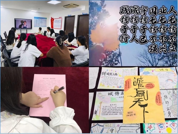 举办诚信手抄报和征文活动。围绕“至诚则成 立信于行”主题,同学们积极参加,绘制的手抄报、海报形式多样,颇具创意,有力促进了诚信理念入脑、入心。家庭经济困难学生结合自身经历和对国家资助的感悟,以诚信感恩为主题创作了一篇篇饱含感情的文章,展示了他们对诚信感恩精神的理解与感悟。