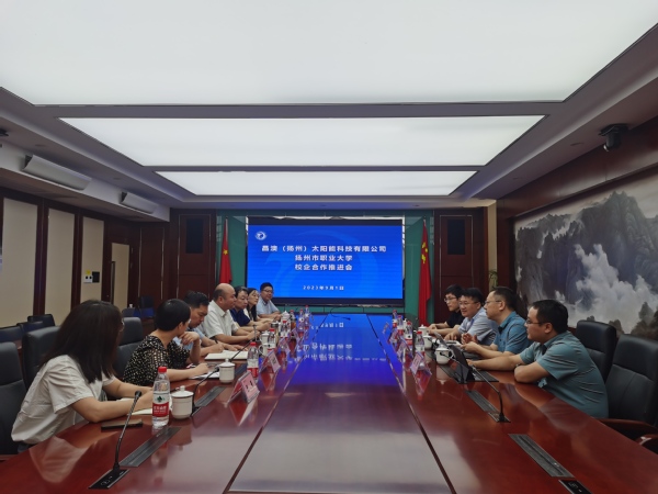 为进一步推动产业学院建设,加快“智能光电与智造”现代产业学院各项工作的落实,近日,我校与晶澳(扬州)太阳能科技有限公司召开校企合作推进会。晶澳(扬州)人力资源部经理赵越、晶澳教育研究中心院长刘虎城等企业专家受邀参加本次会议,会议由学校党委委员、副校长吴书安主持。