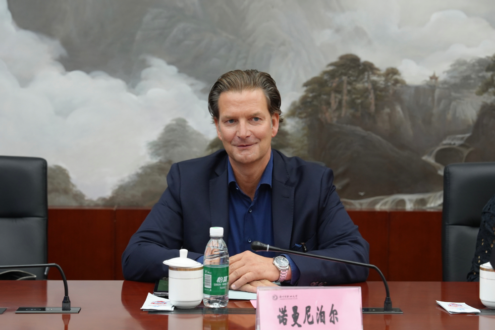Normen Niebuhr先生介绍了集团基本情况、职业教育国际化业务开展的现状、quatraCare健康学院的办学规模等。