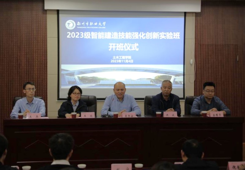 为使学生更好适应建筑业迭代升级的发展需要,土木工程学院在2023级新生中选拔开设智能建造技能强化创新实验班。经过前期的宣传发动、预报名、面试等环节,创新实验班正式成立。近日,学院在学校图书馆100报告厅举行了开班仪式。