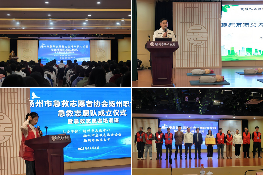 在接下来的一段时间,扬州市急救志愿者协会的老师们将走进校园,为同学们开展急救知识和技能方面的培训,通过考核后,志愿者能获得合格证书。这些志愿者也将担负起传播急救知识、保障校园健康、面向社会服务的职责。校园急救志愿队的成立,校团委进一步加深了与扬州市急救中心、扬州市急救志愿者协会之间的联系,促进了学校与地方社会发展的深度融合。