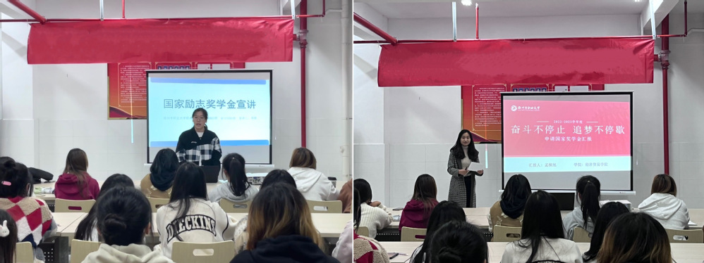 为加强学风建设,弘扬榜样力量,激发学生学习动力,勉励困难学生砥砺奋进,近日,经济贸易学院于阮元书院—一站式社区开展国家奖学金、国家励志奖学金获得者经验分享会。国家奖学金获得者财管2101班孟桐旭、国家励志奖学金获得者会计2101班周静作分享交流,23级学生代表参与。