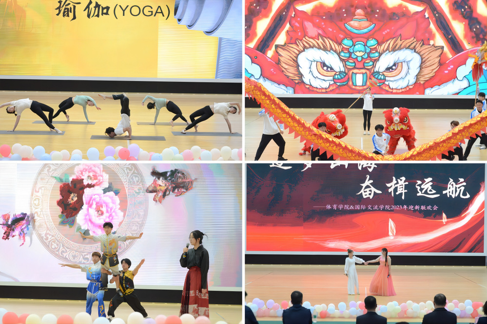 近日,体育学院联合国际交流学院在体育学院篮球馆举办了2023级迎新联欢会。校党委委员、副校长花军,校党委委员、党委宣传部部长袁泉,校党委学生工作部(学生处)部长李爽,国际交流合作处处长孙志林等相关职能部门代表以及学院领导老师与2023级全体新生齐聚一堂,共赴一场绚丽的青春盛宴。