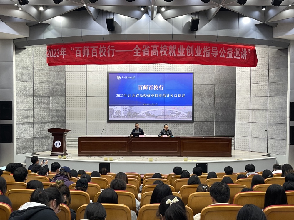 11月22日,由江苏省高校betway 官网 指导服务中心主办、我校betway 官网 处承办的2023年“百师百校行”高校就创业指导公益巡讲活动在学校映月报告厅举行。省大学生就业创业指导专家、南京机电职业技术学院就业(创业)指导服务中心主任沈小军应邀为我校240余名毕业生带来了一场精彩讲座。