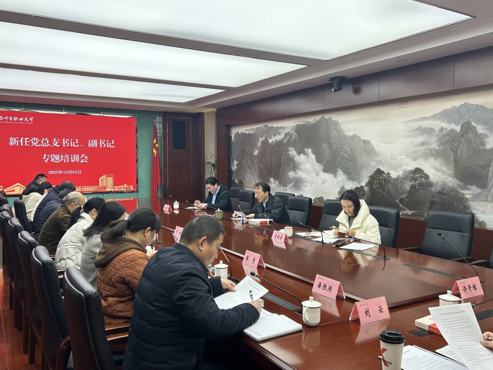 为深入学习习近平新时代中国特色社会主义思想,贯彻落实党的二十大精神及全国、全省、全市组织工作会议精神,加强宣传党的路线、方针、政策下基层,提升基层党组织书记、副书记队伍综合素养,12月1日,党委组织部召开新任党总支书记、副书记专题培训会。近期新任党总支书记、副书记等12人参加专题培训。校党委委员、组织(统战)部部长华炜主持并作培训。
