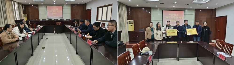 近日,艺术学院院长封琴、副院长仇国梁一行前往扬州市漆器厂有限责任公司举行“校企合作基地”“双师型教师培育培训基地”挂牌仪式。扬州市漆器厂有限责任公司总经理丁学亮,副总经理吴志勇、孙梅等人出席活动。