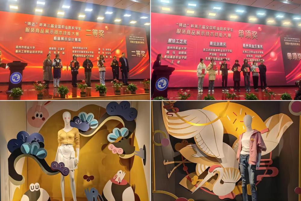 近日,由中国纺织服装教育学会主办的“锦达”杯第三届全国职业院校学生服装商品展示技术技能大赛在无锡工艺职业技术学院举行,来自全国21所职业院校78名参赛选手参加了本次比赛。我校纺织服装学院佘步颖、张蔚老师指导的2组参赛选手在比赛中沉着冷静,充分发挥了应有的训练水平。服工2102班顾钰、服饰2201班徐明珠团队荣获橱窗设计赛项二等奖、最佳工艺奖,服饰2201班王健宇、尚姝彤团队荣获橱窗设计赛项二等奖。