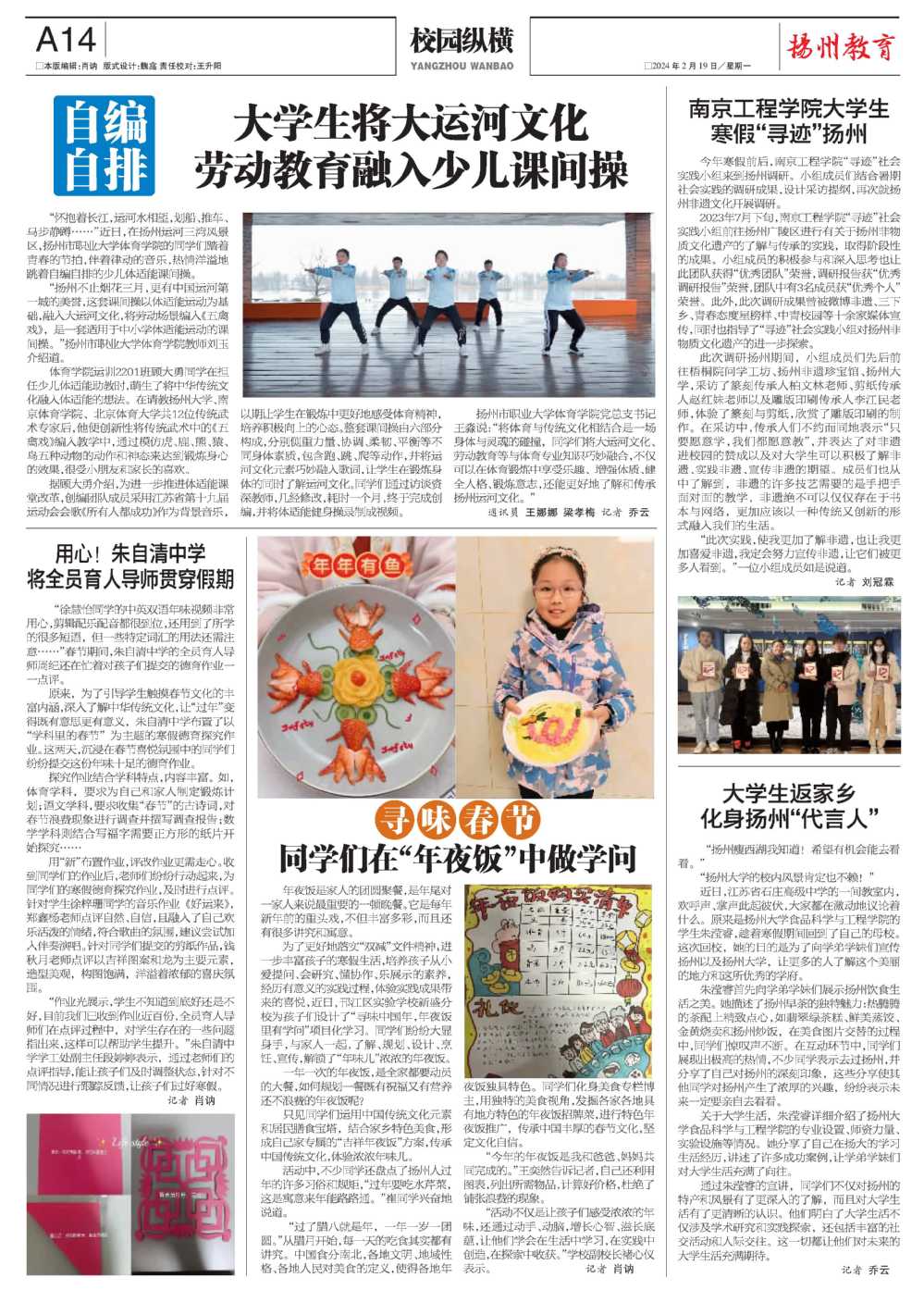 【扬州晚报】大学生将大运河文化 劳动教育融入少儿课间操
