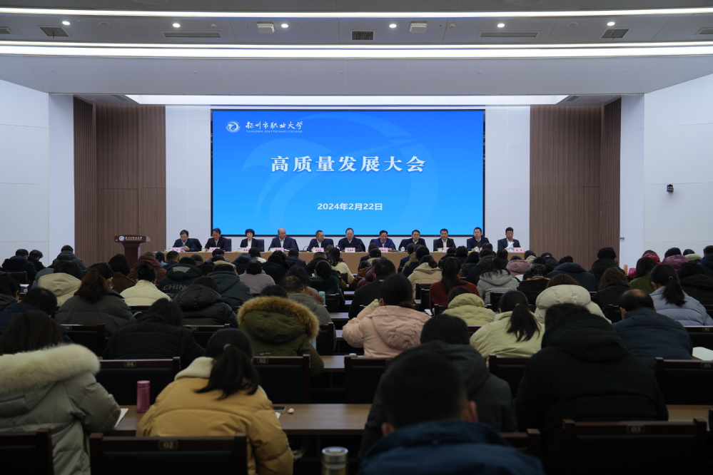 岁序常易,华章日新。2月22日上午,学校在科技综合楼401报告厅召开高质量发展大会,总结回顾学校主题教育成果和2023年学校高质量发展的主要成绩,对2024年高质量发展、党建工作、作风建设等任务进行全面部署。党委书记马顺圣发表题为《高质发展实干争先奋力开启高水平职业大学建设新征程》的讲话,党委副书记、校长周春光主持会议。全体校领导、全体中层干部、各学院(部门)内设机构负责人参加会议。