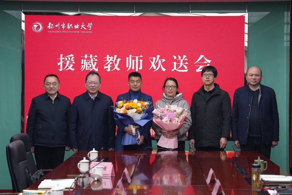 会议介绍了本次援藏教师的推选情况和蒋业浩同志的基本情况,并向其赠送了教学礼包等物品。会上,蒋业浩表示,为期一年半的援藏支教是对自身的一次历练,一定竭尽所能,不辱使命,展现扬州职大人的担当精神与专业素养。