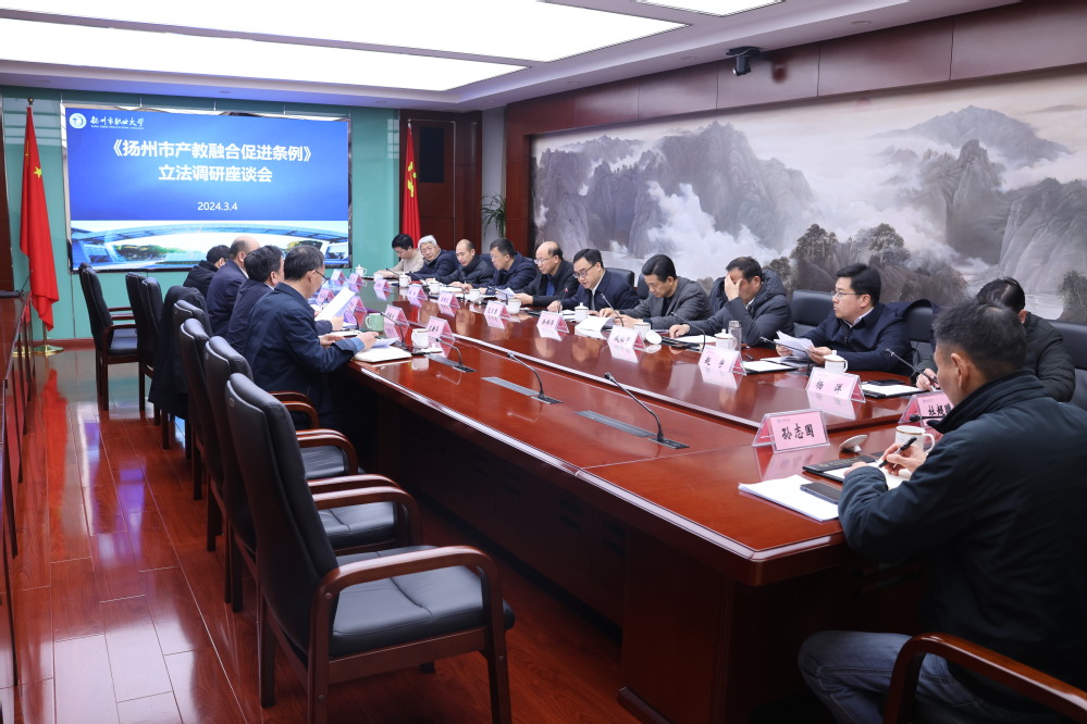 为进一步做好我市产教融合立法工作,3月4日下午,市人大常委会副主任范天恩、党组成员徐祥华带队赴我校开展《扬州市产教融合促进条例》立法调研,校党委书记马顺圣,党委副书记、校长周春光参加活动。