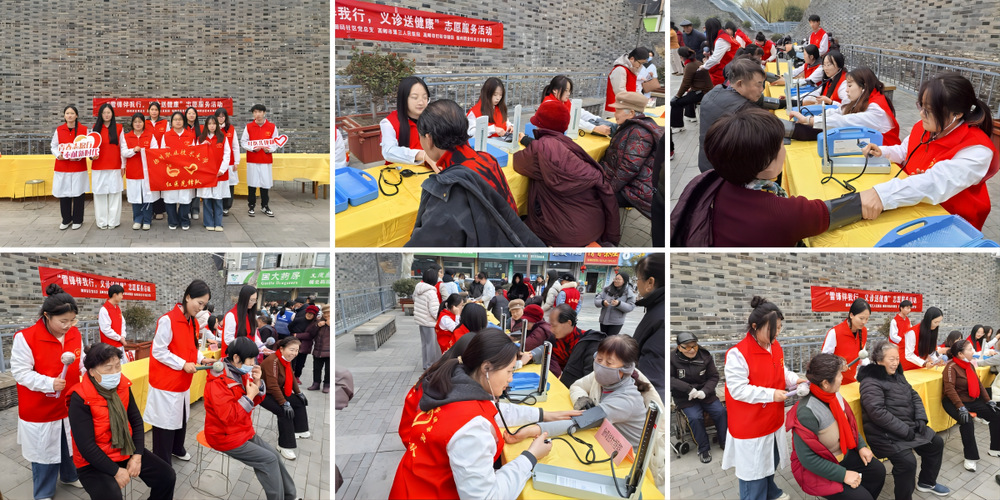 3月5日,在全国学雷锋纪念日到来之际,医学院红医先锋队来到高邮北门大街瓮城遗址公园,为高邮御码社区居民开展公益义诊志愿服务,以专业所学服务基层群众,用实际行动践行“红医”初心与雷锋精神。